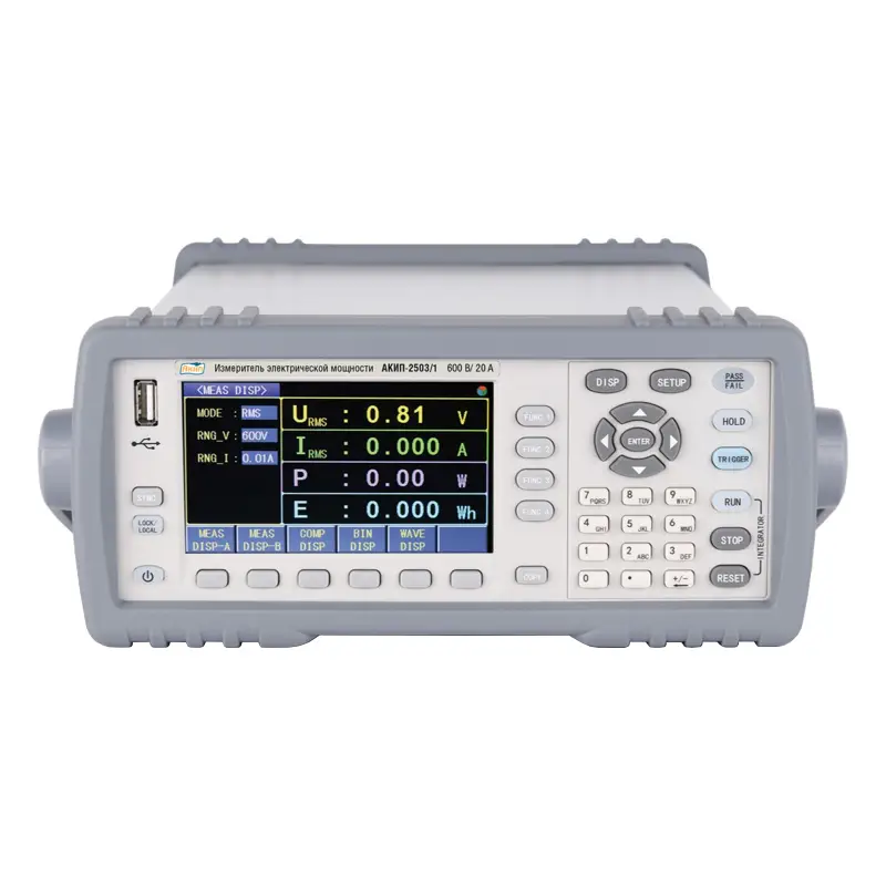 Измеритель мощности АКИП-2503/1 представляет собой высокотехнологичное устройство, предназначенное для точного измерения электрических параметров в различных системах. Этот прибор оснащен одним каналом и функционирует в режиме однофазного двухпроводного подключения (1P2W), что делает его идеальным для применения в бытовых и промышленных условиях.