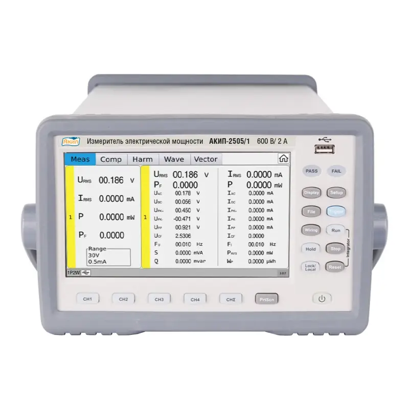 Измеритель мощности АКИП-2505/6 — это современный прецизионный прибор, предназначенный для измерения параметров электрической мощности в однофазных сетях. Его высокая точность и широкий функционал делают его незаменимым инструментом для инженеров, работающих в области электроэнергетики, промышленной автоматики и лабораторных исследований.