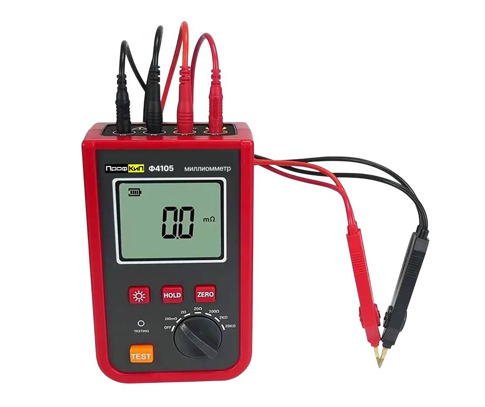 Цифровой переносной миллиомметр ПрофКиП Ф4105 представляет собой высокоточное измерительное устройство, предназначенное для определения малых значений электрического сопротивления в диапазоне от 20 миллиОм до 20 килоОм. Прибор имеет шесть пределов измерения, что обеспечивает гибкость и точность при работе с различными типами объектов, включая электрические соединения, кабели, обмотки двигателей и другие элементы низкоомных цепей. В основе метода измерения лежит четырёхпроводная схема, позволяющая исключить влияние сопротивления соединительных проводов на результат, что гарантирует стабильную и воспроизводимую точность даже при длительной эксплуатации.